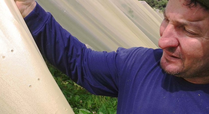 Longe dos ventos, do granizo e da maioria dos problemas provocados pelo clima, a uva cultivada em área coberta garante maior segurança para os viticultores. Num ano como este, com muitos estragos provocados, principalmente pelos vendavais, a proteção da videira é ainda mais essencial. O agricultor de Linha Palmeira/São José, no interior do município de Farroupilha, Francisco Perini, calcula que perdeu 40% da produção da variedade Bordô por causa de galhos quebrados pelo vento e devido a incidência de doenças como Botrytis (Podridão Cinzenta) e Míldio – fungos que se desenvolvem com o excesso de umidade e temperaturas entre 18°C e 25°C. Já na área coberta a videira escapou dessas adversidades climáticas.